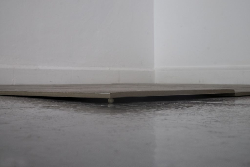 Anna Dot, Una muntanya a dins de casa, 2018. Baldosas y guisantes. Dimensiones variables