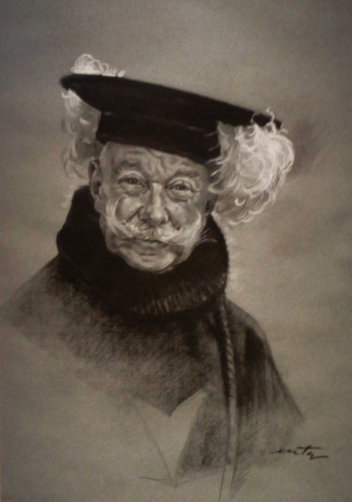En total 34 retratos y varias caricaturas que no se incluyen en el catálogo, error por exceso de respeto, imagino, y con las cuales se podría hacer otra exposición con las que expuso en la Sala García Castañón en 1957 junto con otras 27 caricaturas.